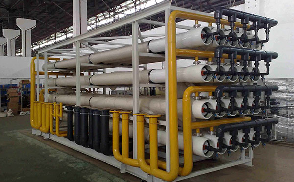 EDI電去離子裝置將離子交換樹脂充夾在陰/陽離子交換膜之間形成EDI單元。EDI組件中將一定數(shù)量的EDI單元間用網(wǎng)狀物隔開,形成濃水室。又在單元組r 兩端設(shè)置陰/陽電極。在直流電的推動下,通過淡水室水流中的陰陽離子分別穿過陰陽離子交換膜進入到濃水室而在淡水室中去除。而通過濃水室的水將離子帶出系統(tǒng),成為濃水。