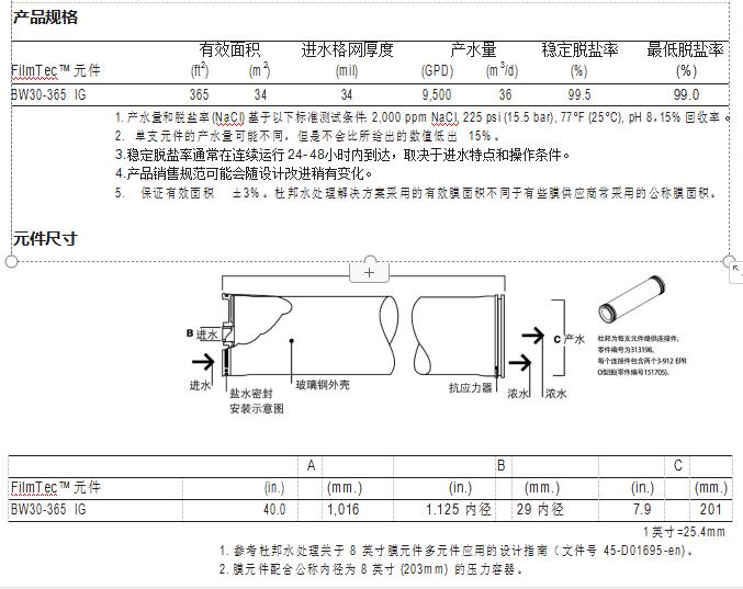 FilmTec™ BW30-365 IG 元件經(jīng)過了數(shù)十年的性能驗(yàn)證,具有優(yōu)異 的性能: