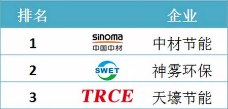 2015年上半年節(jié)能行業(yè)營(yíng)收排名前三的分別是:中材節(jié)能、泛亞環(huán)保、神霧環(huán)保