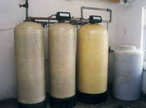 水的硬度主要由鈣、鎂形成及表示,一般采用陽離子交換樹脂(軟水器)將原水通過鈉型陽離子交換樹脂,使水中的硬度成分Ca2+、Mg2+與樹脂中的Na+相交換,從而吸附水中的Ca2+、Mg2+,使水得到軟化。隨著樹脂內(nèi)Ca2+、Mg2+的增加,樹脂去除Ca2+、Mg2+的效能逐漸降低,當樹脂吸收一定量的鈣鎂離子之后,就必須進行再生,再生過程就是用鹽箱中的食鹽水沖洗樹脂層,把樹脂上的硬度離子在置換出來,隨再生廢液排出罐外,樹脂就又恢復(fù)了軟化交換功能。