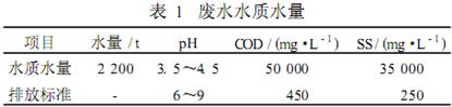 該企業(yè)廢水主要來自于粗餾塔酒糟廢水、精餾塔余餾水等廢水,廢水水質(zhì)和水量如表1所示。設計出水水質(zhì)須達到當?shù)爻鞘形鬯幚韽S接管標準。
